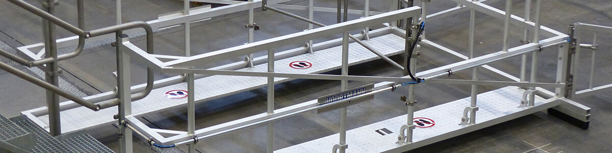 In der Höhe angeordnete Maschinen oder Einrichtungen müssen gelegentlich gereinigt oder kontrolliert werden. Mitunter sind die Anlagen jedoch zu weit von der begehbaren Bühne entfernt, um einfach und sicher daran arbeiten zu können. In diesem Fall hilft eine zusätzliche Bühnenplattform, die dann, wenn sie gebraucht wird, horizontal ausgefahren werden kann. Ein umlaufendes Geländer schützt das Personal gegen Absturz.